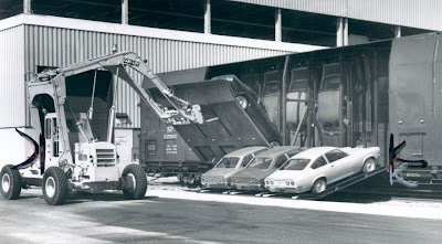 Trains delivering cars in the early 70's, packed, racked, and stacked.